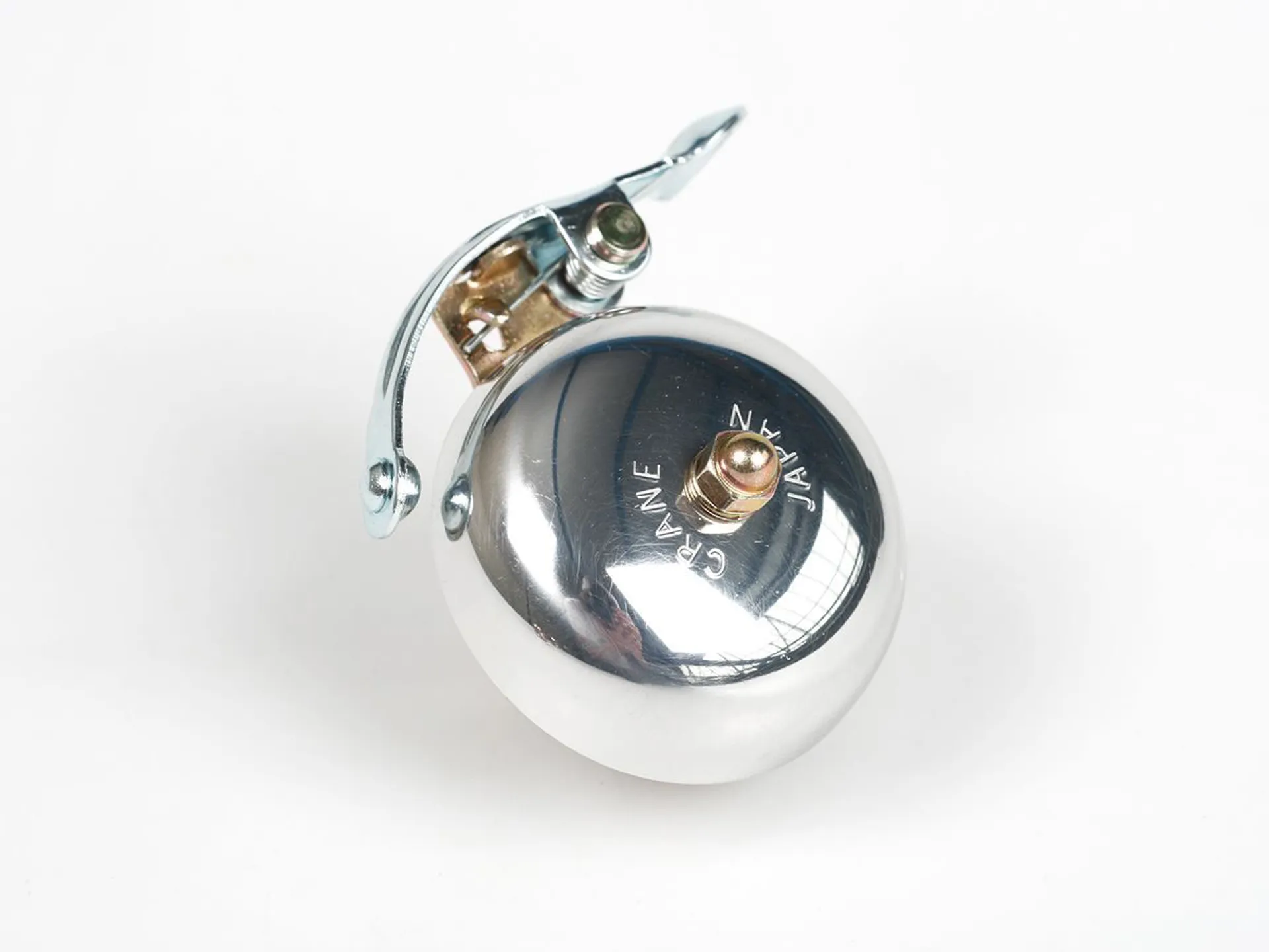 These traditional designs are timeless and have beautiful clear ring tones. This is approx 45mm across the dome from Crane, designed to fit pretty much any handlebar, that is plenty loud – and louder even than your typical “ding-ding” bells.
