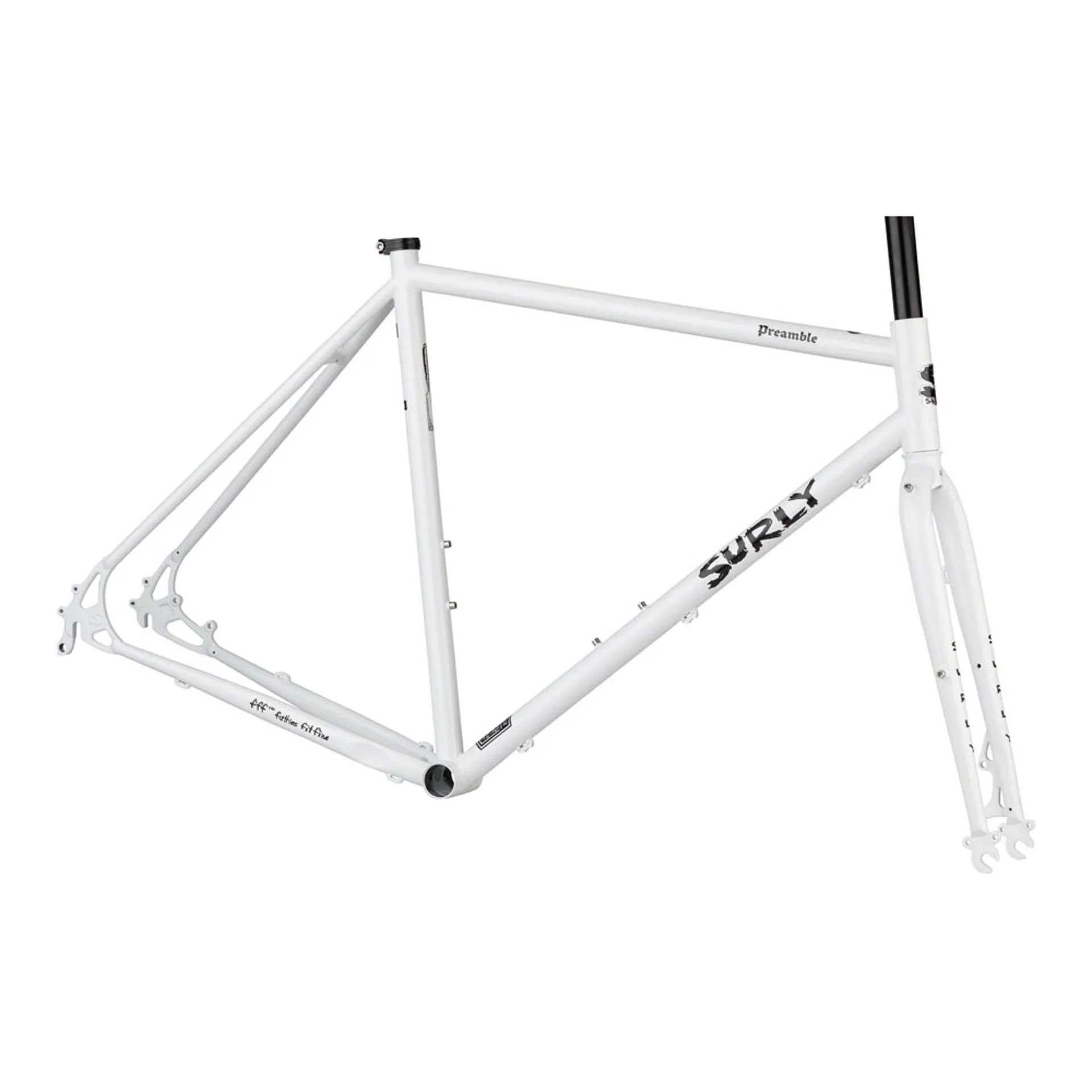 Designed to introduce unfamiliar riders to surly’s pavement and gravel line, preamble highlights surly’s most essential features: durable custom steel tubing, a renowned ride feel, and just the right mounts for running racks, fenders, and bottle cages. Available in flat-bar and drop-bar configurations, it’s disc-brake specific and shares a single-position vertical dropout with surly bridge club. For new weekend riders and veteran commuters, preamble makes it easier than ever to get out of the car and on top of tough and comfortable chromoly steel.