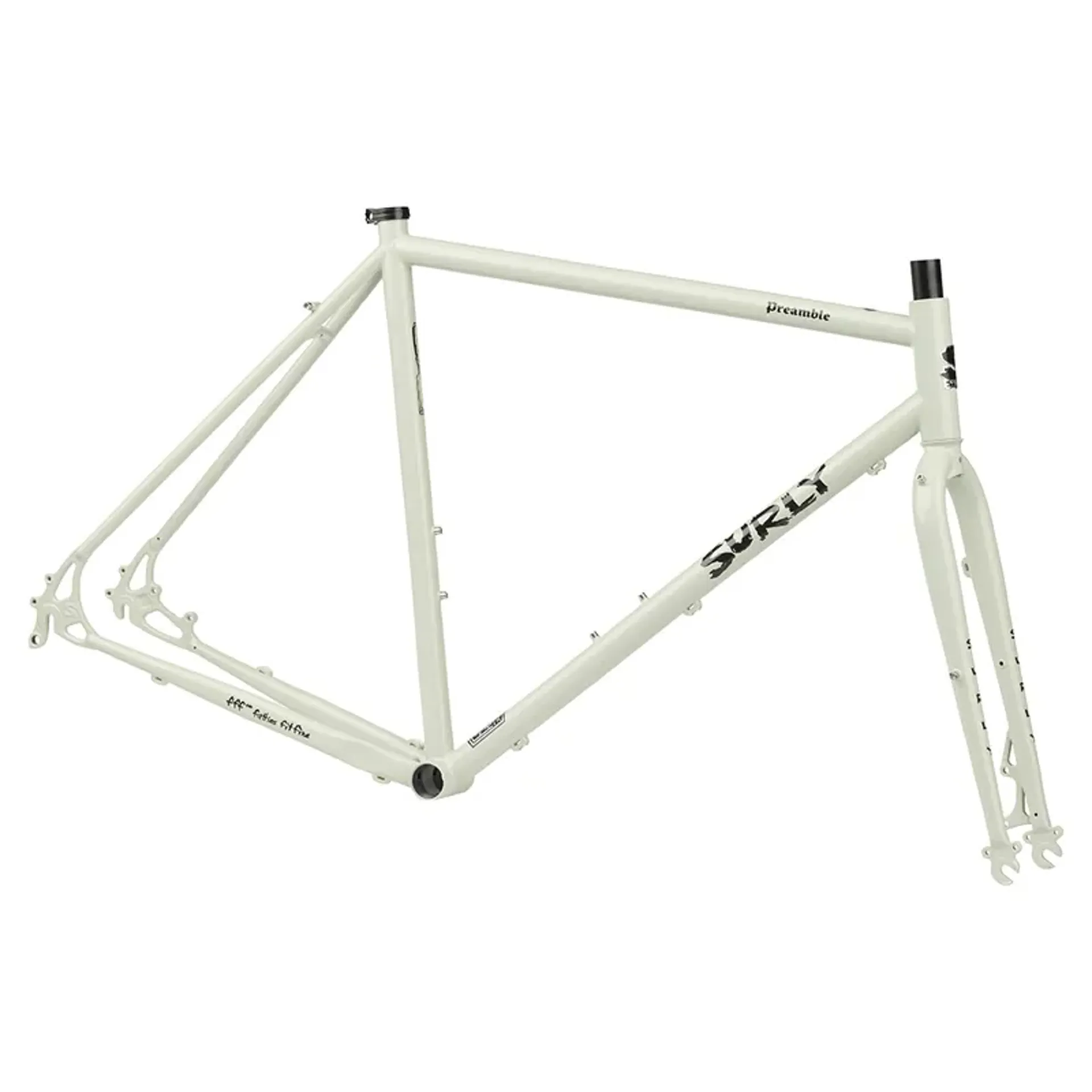 Designed to introduce unfamiliar riders to surly’s pavement and gravel line, preamble highlights surly’s most essential features: durable custom steel tubing, a renowned ride feel, and just the right mounts for running racks, fenders, and bottle cages. Available in flat-bar and drop-bar configurations, it’s disc-brake specific and shares a single-position vertical dropout with surly bridge club. For new weekend riders and veteran commuters, preamble makes it easier than ever to get out of the car and on top of tough and comfortable chromoly steel.