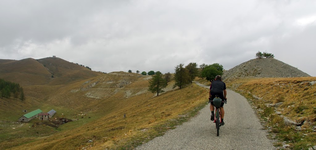 We were now into our final day with one last big gravel climb (the largest on the rally) up to the Fort de la Forca and Col Turini. The weather was about to break again so we headed off hoping to beat the worst of it. We climbed steadily eventually breaking clear of the tree line and onto the open slopes. Ahead of us was the Fort sitting high on a hill and from here it really was downhill all the way to Nice (about 55kms to be precise).