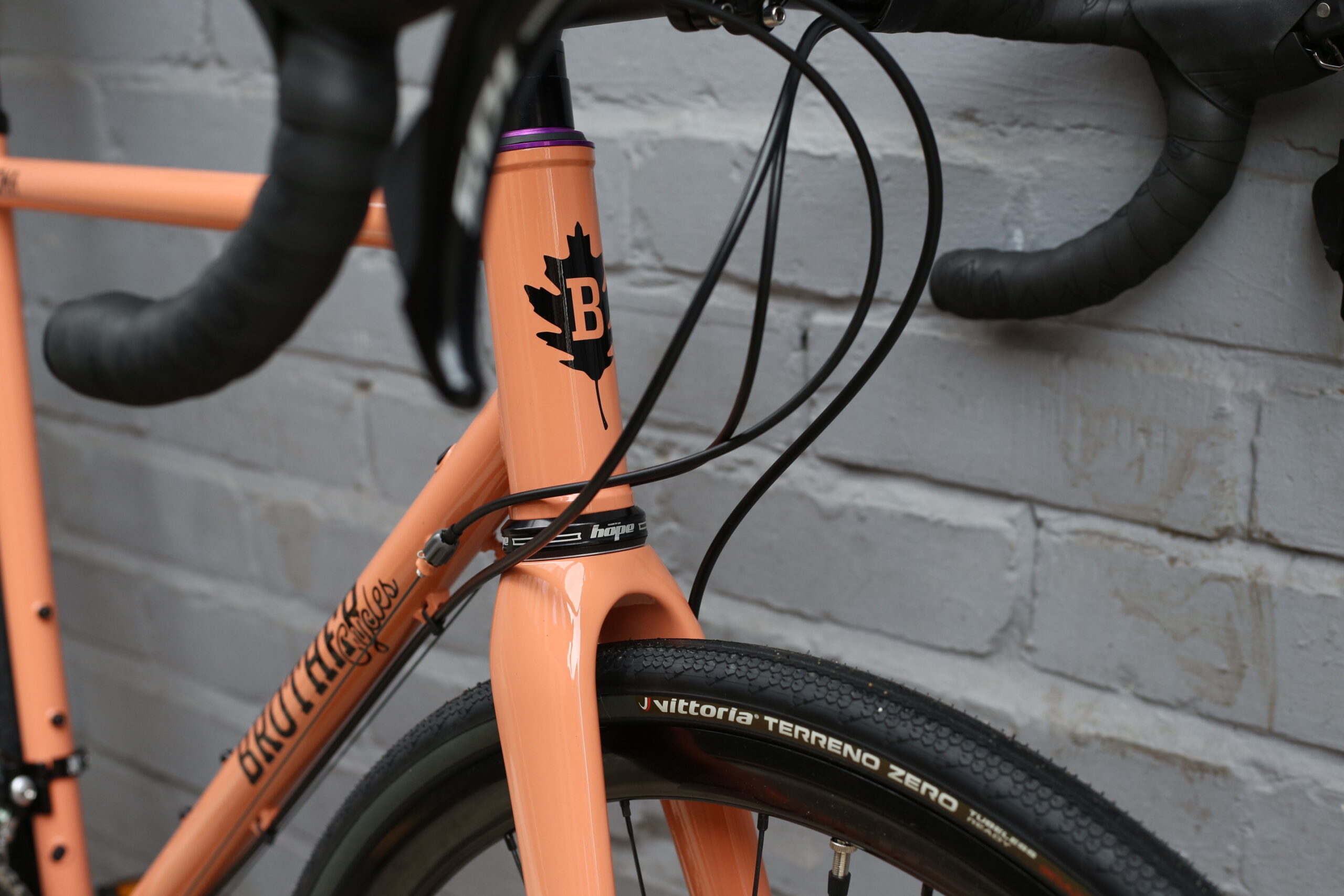 Brother Cycles Stroma All Road frameset built up with Halo Devaura wheels with an SP dynamo, tubeless Victoria Terreno Zero tyres set up with Stans tubeless of course.