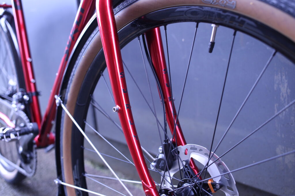 Remember the red Surly Midnight Special from a couple of years ago? That was a great colour and our Norwegian correspondent ( and also lemming expert ) ( no really… ) they lost theirs. The new Fools Gold ( coming soon!! ) is also a fab colour but just didn’t hit the spot for them. Off the black frameset went to Cyclone and they worked their magic. This Candy Red is off the scale fabulous. We had to pull in a favour to get the black decals, for some reason these are super thin on the ground and it all came together in the end.
