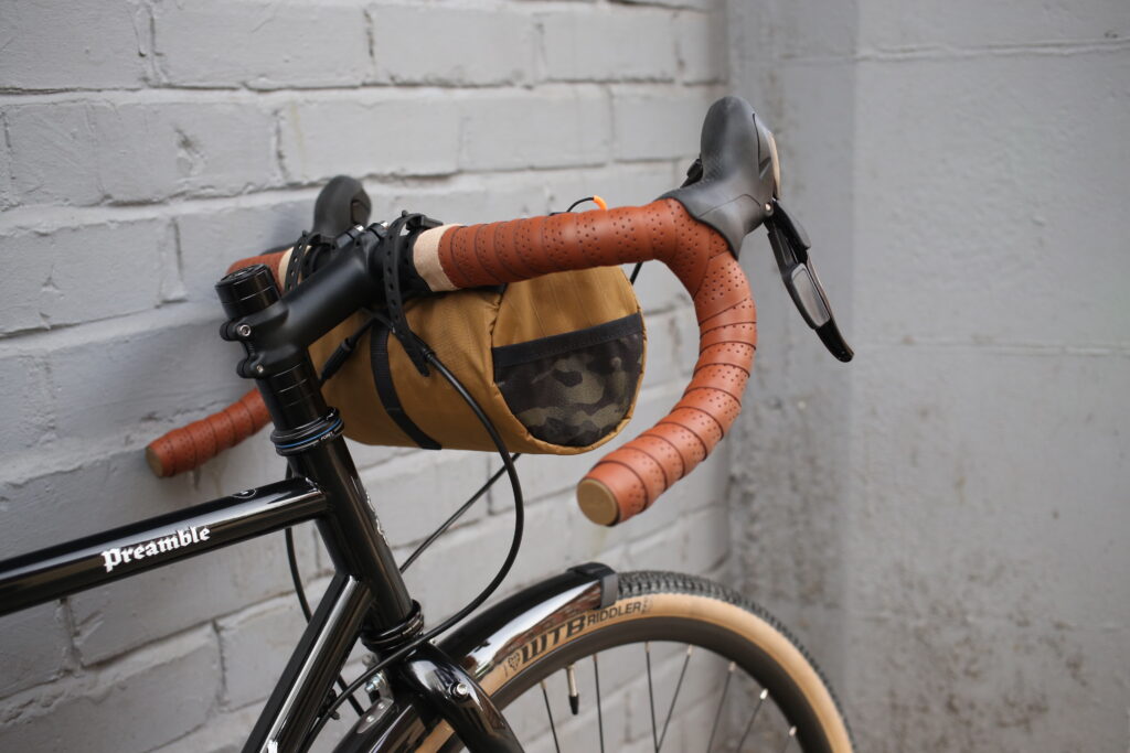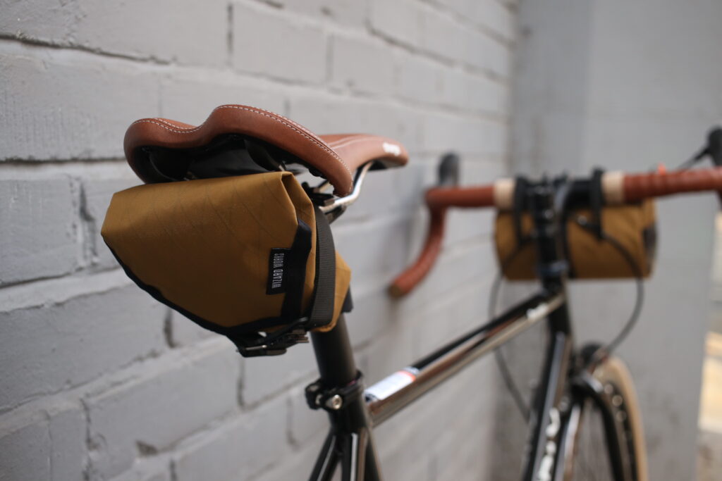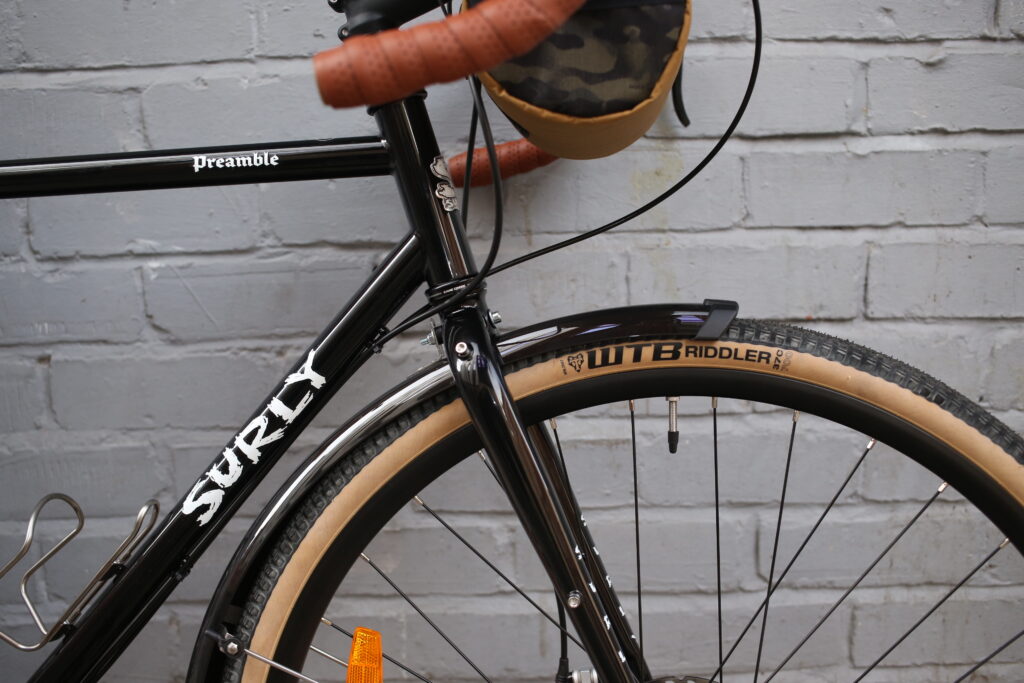 All the tan and brown works really well with the black frameset, Wizard Works bags front and rear and a King Stainless bottle cage to finish.