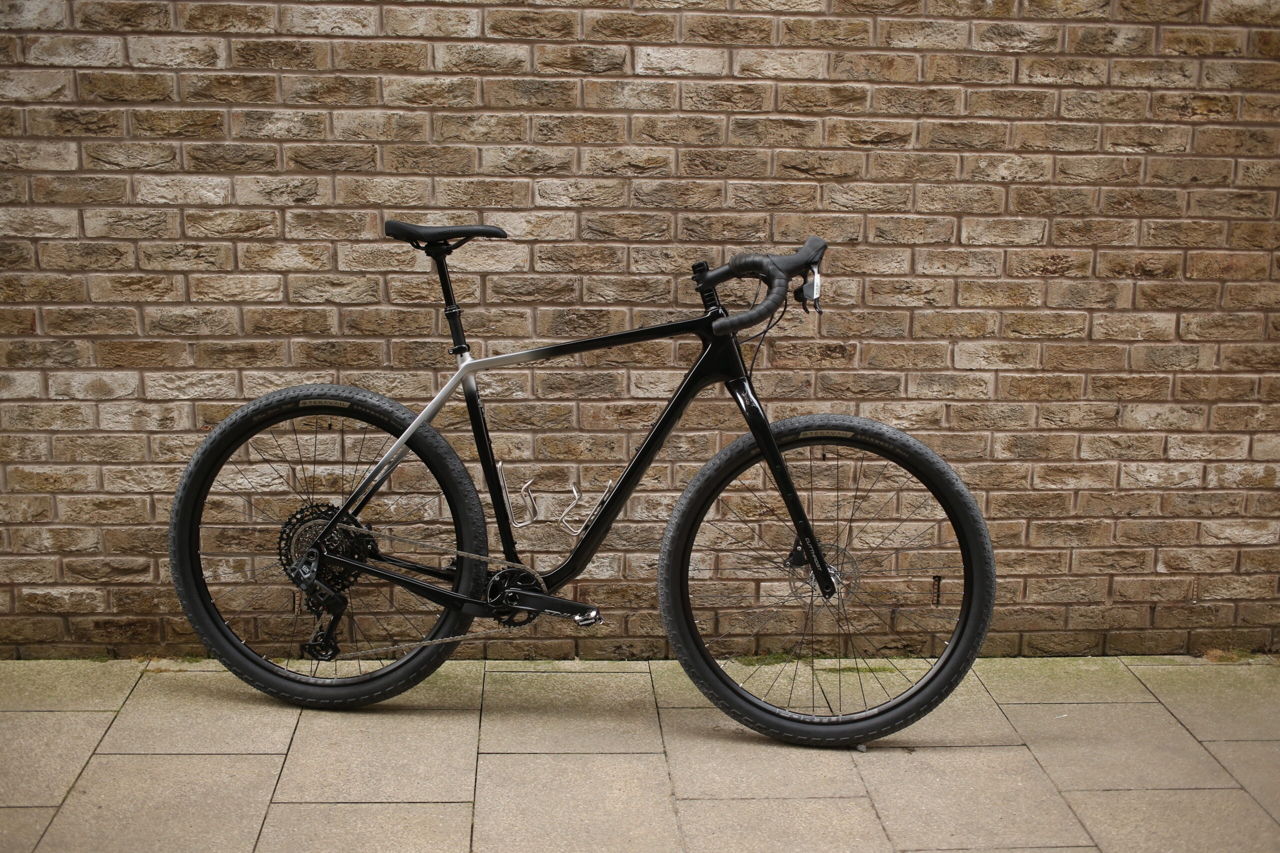This is version 3 ( V3 ) of the Salsa Cutthroat now. Same compliant and efficient frameset designed for covering miles of mixed surface terrain as the previous iterations but now with a UDH hanger for direct mounting your rear derailleur or universal & easy availability to replace your hanger should the worst happen. This one built up with 12 speed SRAM AXS GX & Apex Eagle for simple and reliable shifting. Hope wheels and bottom bracket to last the distance and a KS dropper for when things get rowdy in the hills. King titanium cages for the finishing touch.