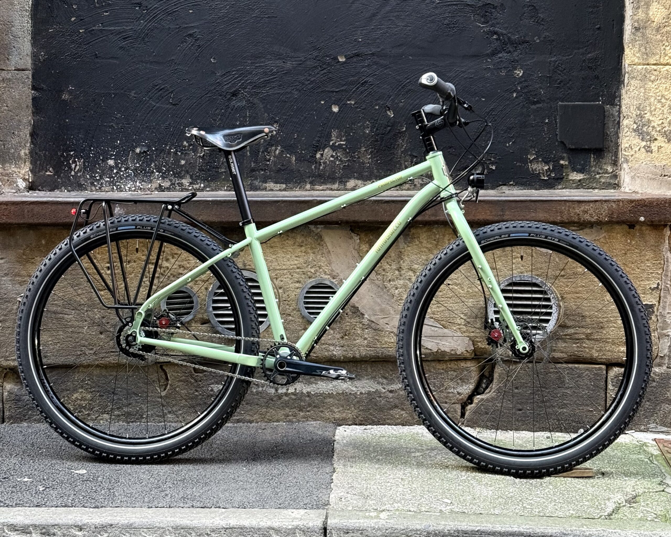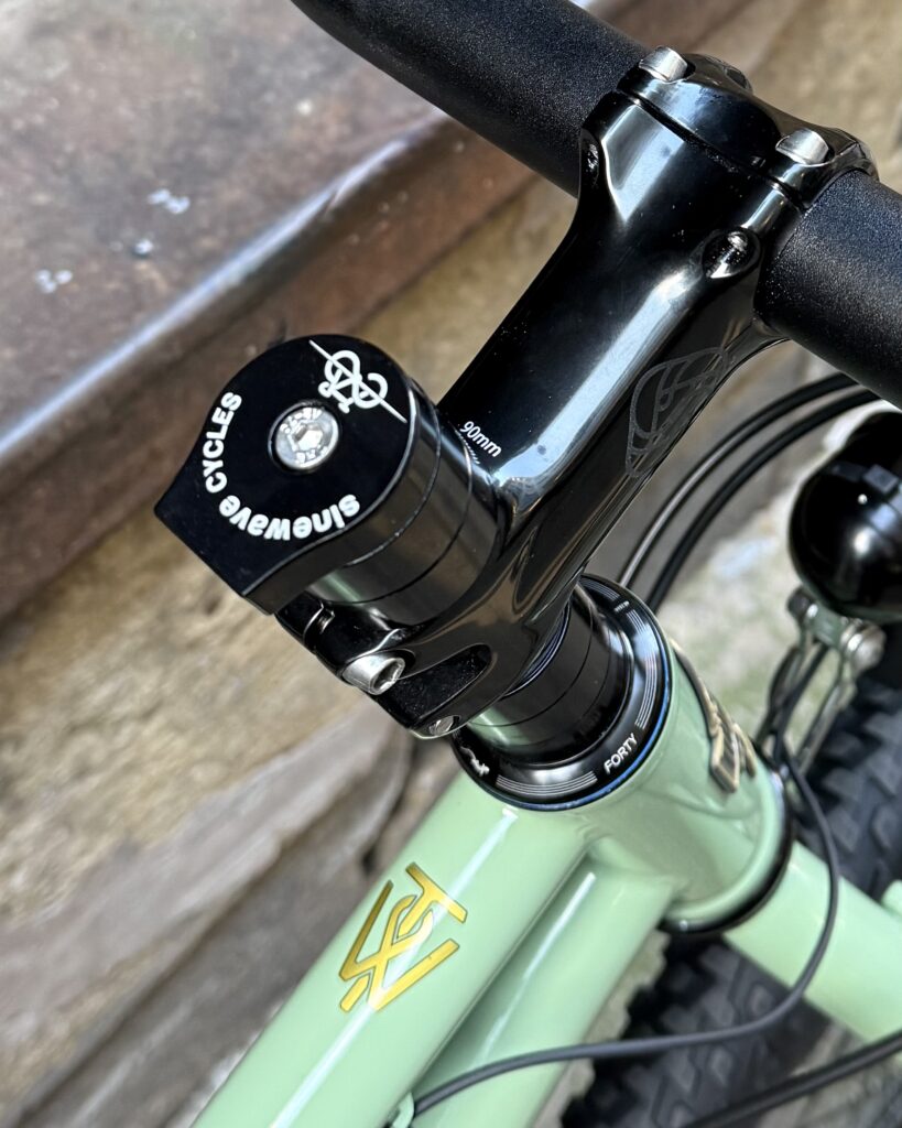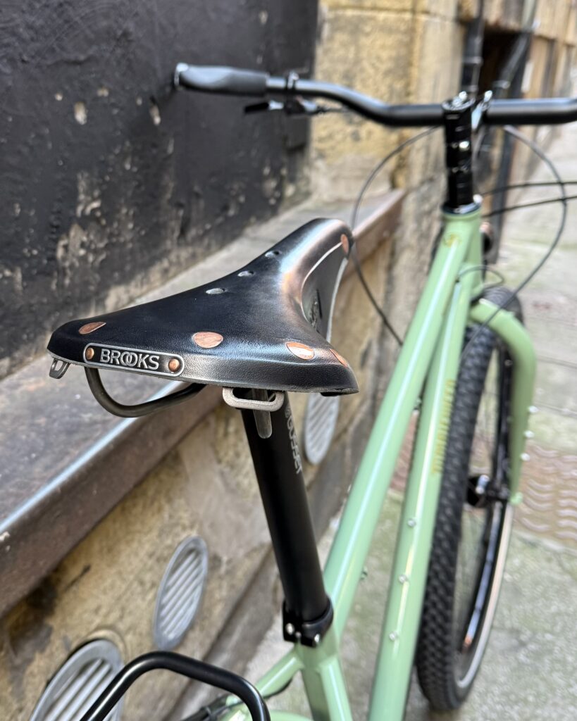 Gusset stem and seatpost taking care of the Tumbleweed Persuader bars and titanium Brooks B17,