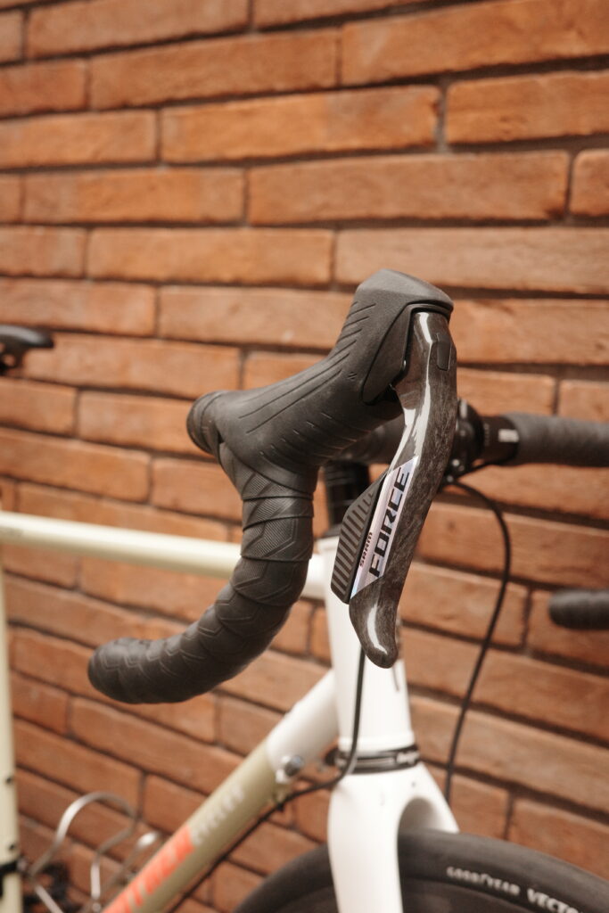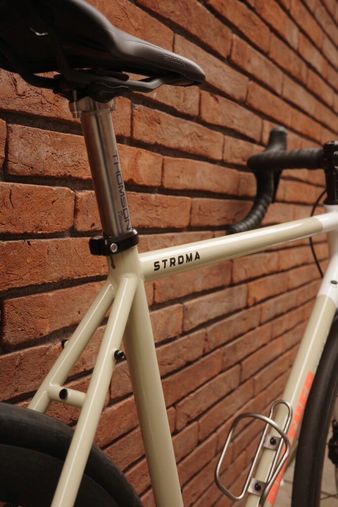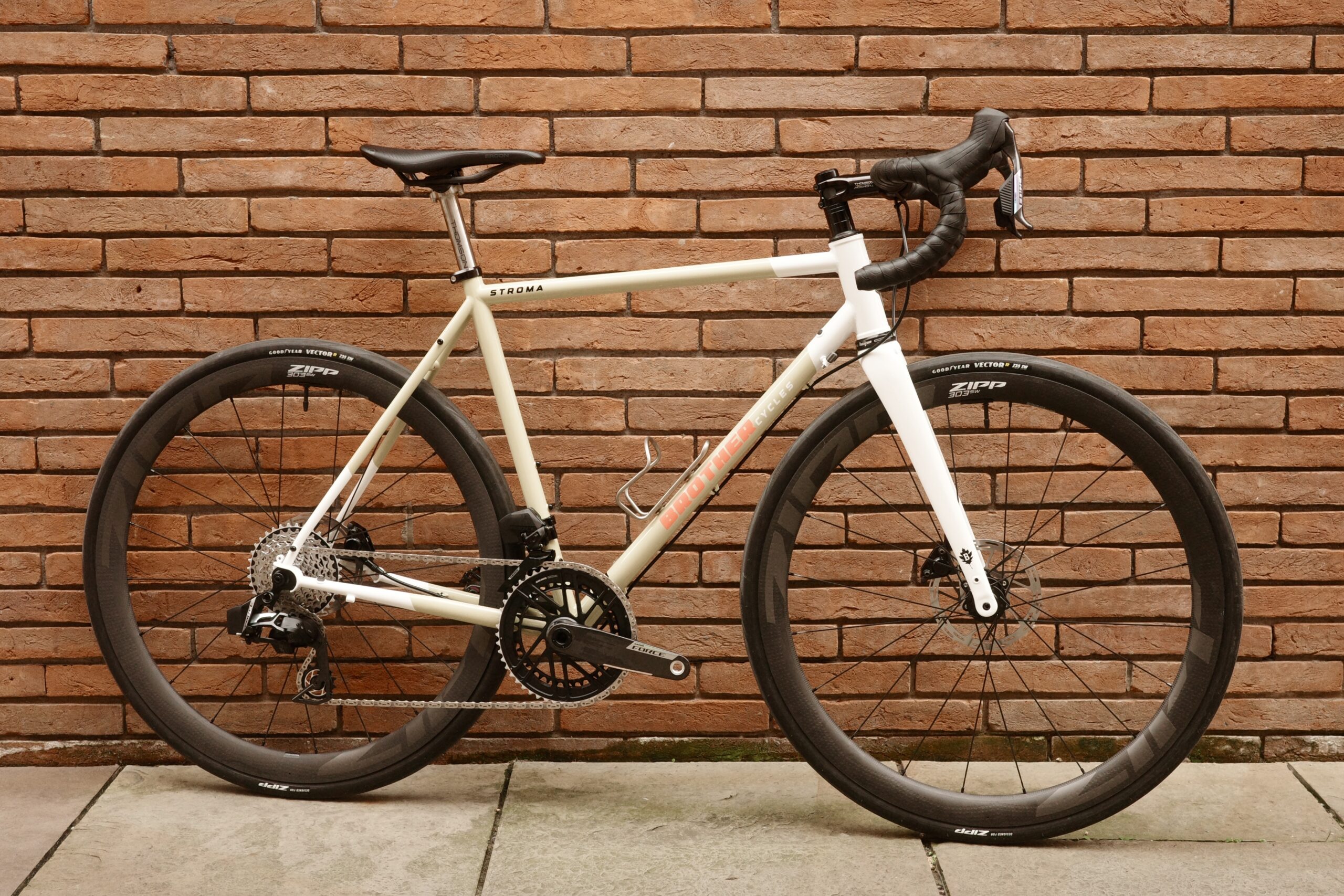 This is an absolute cracker of a Brother Stroma built for longer days in the saddle on mixed surfaces in the Peak District and beyond. Fast and comfortable over whatever our roads can throw at it. Reynolds 725 steel and a carbon fork for strength and weight saving, ideal for year round riding. Mounts for guards and racks, up to 38mm tyres ( 35mm here ) Di2 / dynamo routing and thru axle flat mount dropouts. Absolutely love these component choices, the new Zipp 303 SW wheels are a great option ( with tyre pressure monitoring! ) and Force AXS never fails to impress. Full spec below;