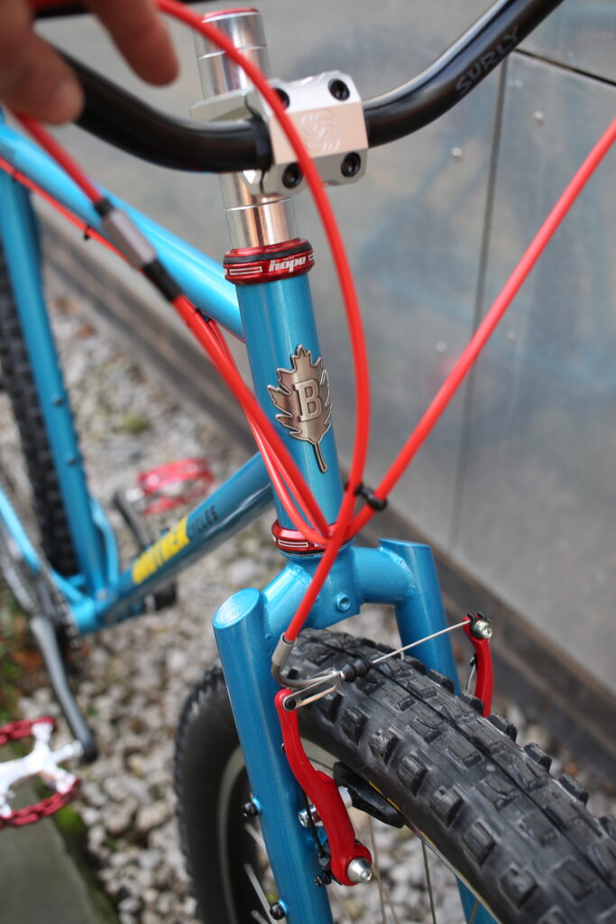 1 x 9 thumbshifter gear set up and some 27.5 x 2.6” fat rubber will work equally well in the woods and moors, just like an ATB should.