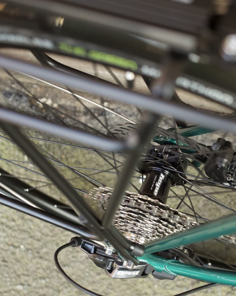 A super mile munching all rounder for utility around the city and some longer Audax style rides too Shimano 12 speed hydraulic groupset on some of the new Hope RX24 Gravel wheels, wrapped in the ever faithful Schwalbe Marathon 35mm tyres.