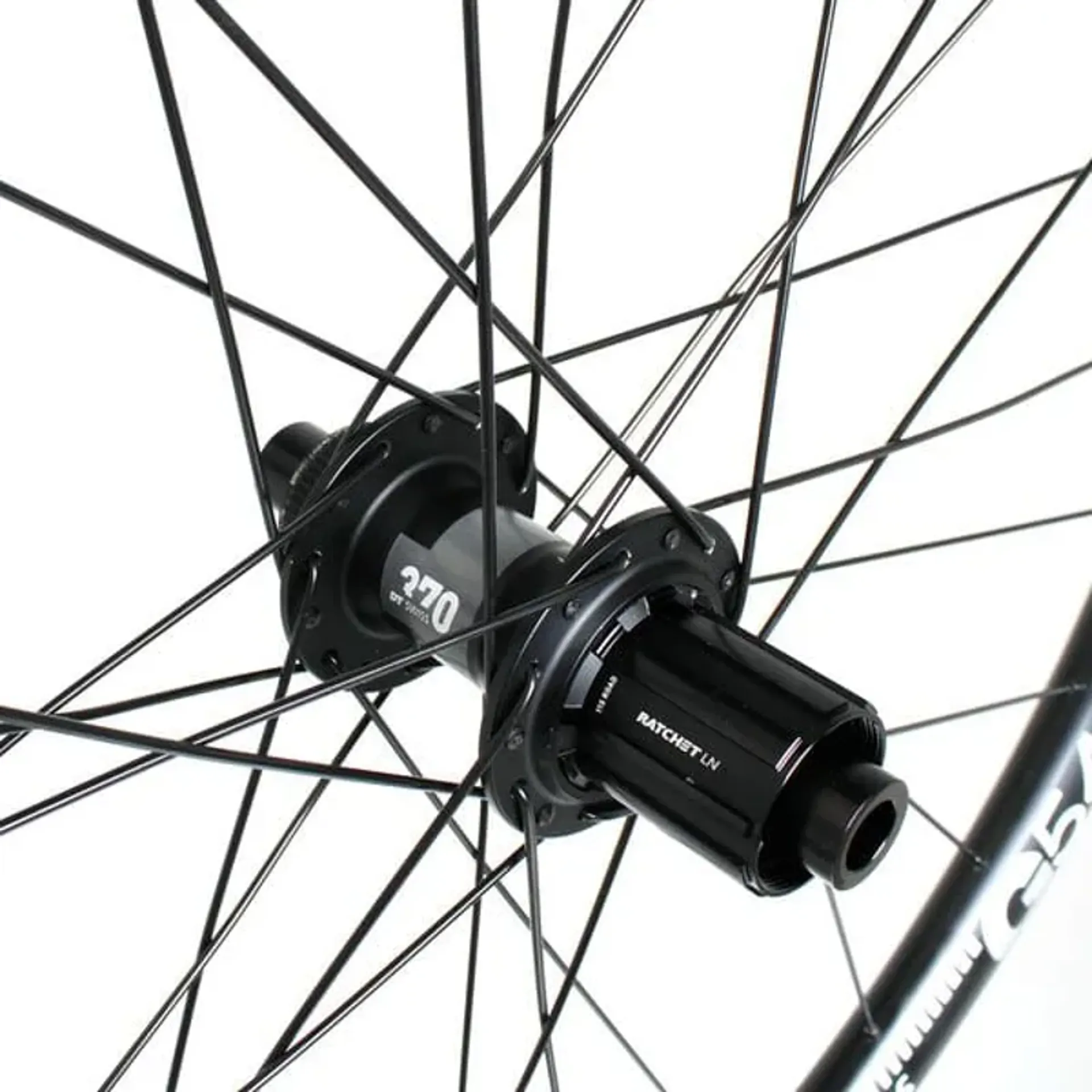 • 28 plain gauge DT swiss stainless steel spokes black (268mm drive side, 270mm non-drive side)