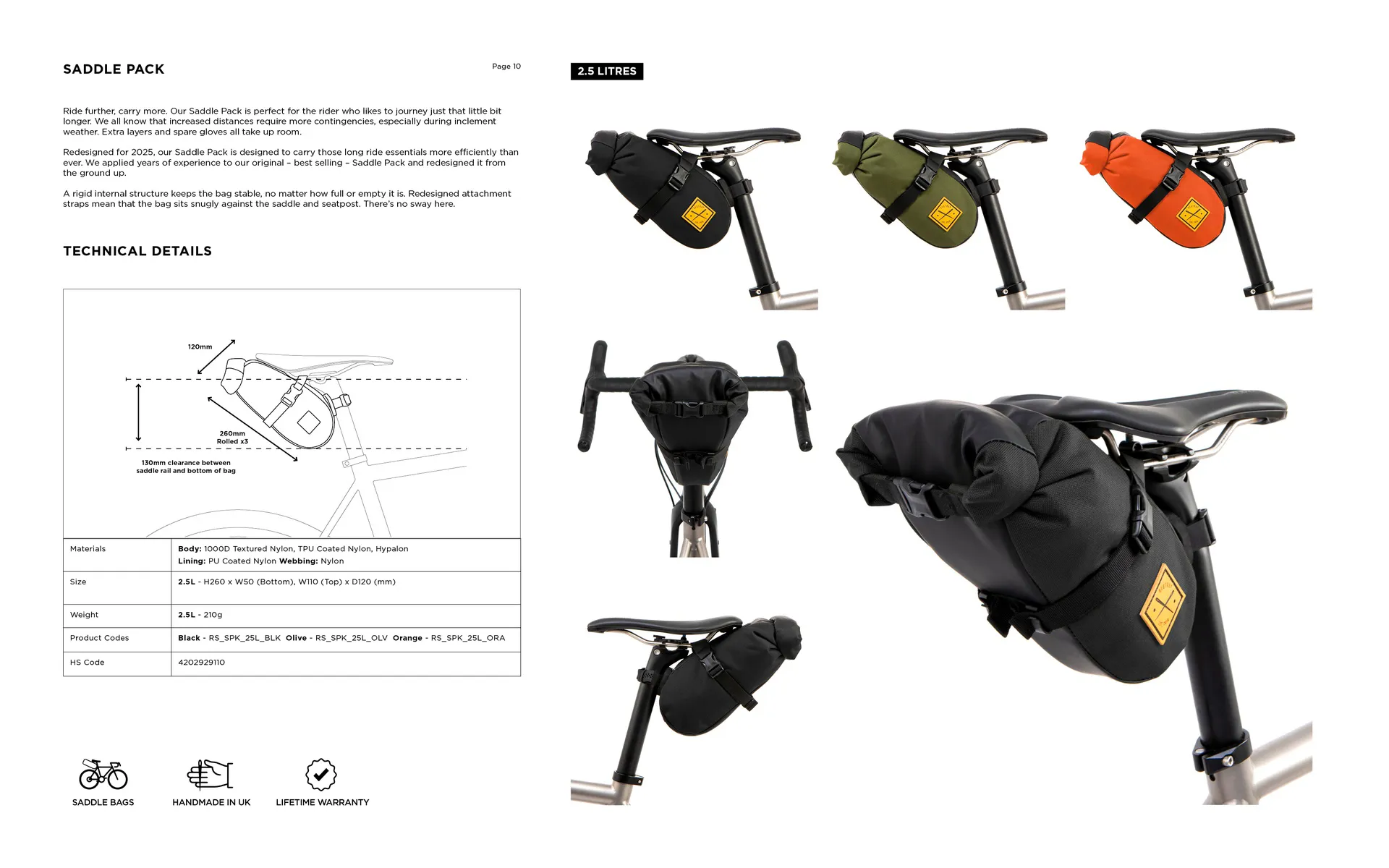 Whether you are a hyper-minimalist bikepacker (or just have a small frame), hardy audaxer or simply prefer your spare layers on your bike rather than in a jersey pocket: our Saddle Pack fits the bill.